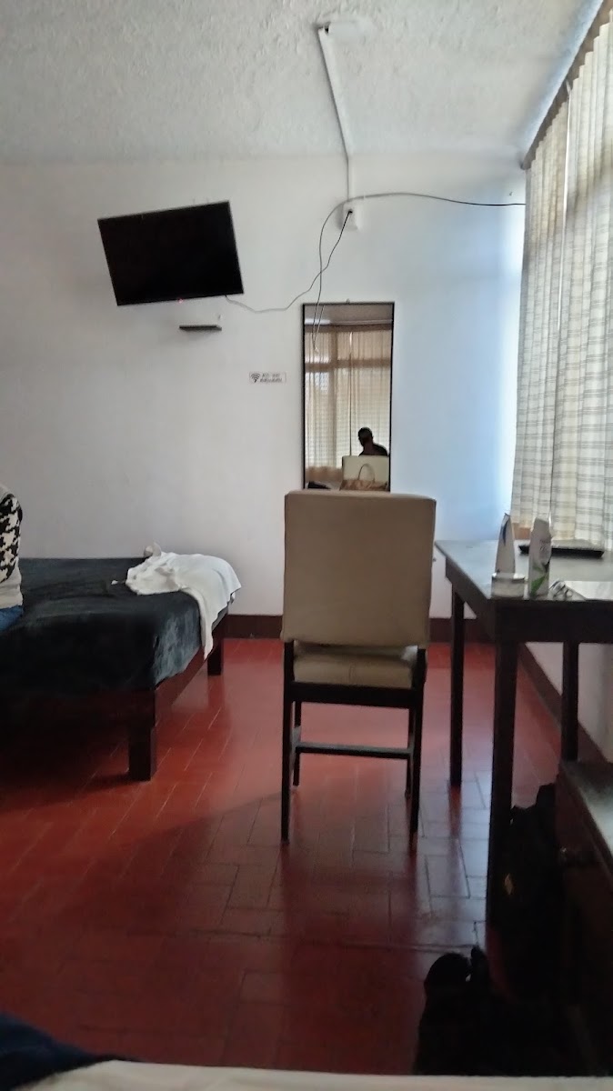 El Hotel está en muy buena ubicación, está muy cerca del centro y lo mejor es que está a precios muy accesibles. Mi habitación era amplia para 6 personas, incluso dentro de la habitación podrían poner una mesa más amplia y una pequeña sala porque de verdad que la habitación es muy amplia. El baño es pequeño pero cumple su objetivo. Lo malo fue que me tocó cerca de la recepcion y escuchaba mucho el timbre . Pero aún así disfrute de mi instancia. El estacionamiento es amplio y de fácil acceso. Es buen lugar para quedarse. Feliz descanso